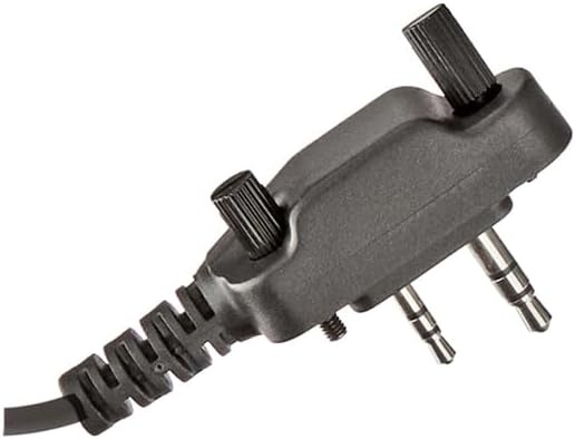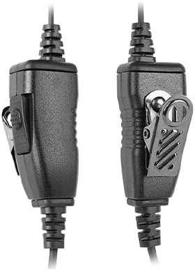 A coiled wire leaves the radio and goes to a large push to talk and microphone which is designed to perform well in the loudest atmospheres. The second wire goes from the microphone / PTT unit to a G-shaped earpiece.